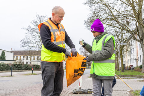 Das Sammelequipment für Schulen, Kitas und Unternehmen wird in der Woche vor den Bremer Aufräumtagen (09. bis 12. März) an die bei der Anmeldung angegebene Adresse geliefert.