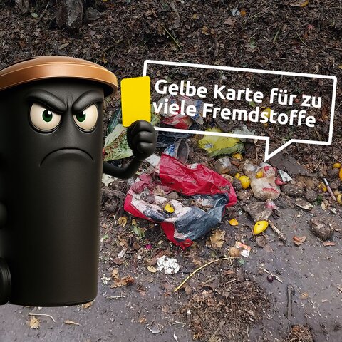 Die gelbe Karte ist eine Verwarnung und die letzte Aufforderung, den Bioabfall künftig besser zu trennen. Wir haben die Tonnen dieses Mal noch mitgenommen und die Tonne kann bei der nächsten Leerung wieder bereitgestellt werden. Bitte ohne Fremdstoffe.
