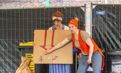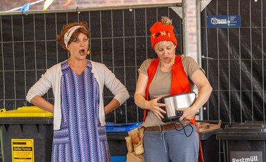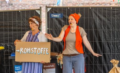 Das Abfalltheater wird im Rahmen der Mission Orange in Kooperation mit BREBAU aufgeführt.