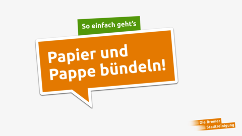 Wer keinen Platz für die Papiertonne mit blauem Deckel hat, entsorgt Papier- und Pappabfall als Bündel. Dabei ist es wichtig, dass das Papierbündel gut gepackt und verschnürt ist, damit keine Papierschnipsel oder Pappreste in Eurer Straße herumfliegen. Denn sonst schaden die Abfallreste der Umwelt und erschweren unseren Mitarbeitenden das Einsammeln am Abholtag.