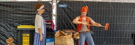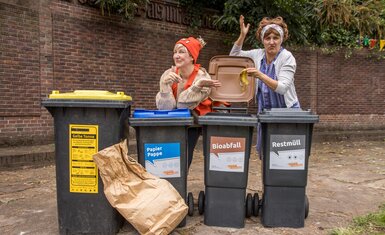 Das Abfalltheater wird im Rahmen der Mission Orange in Kooperation mit BREBAU aufgeführt.